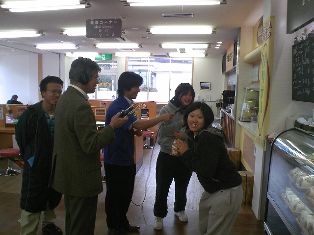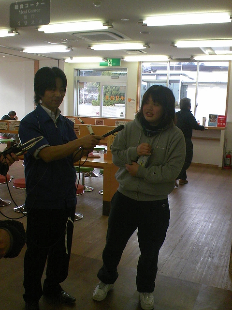 バスで帰ってきたんですが、途中止まったサービスエリアで学生がラジオのインタビュー受けてました。