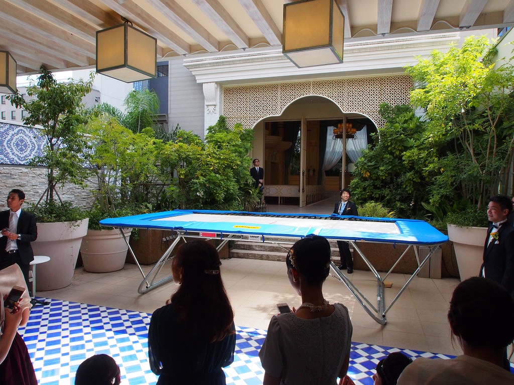 結婚式では僕ら日体関係の参列者は、このトランポリンとエッサッサくらいしかしないんですが、今回は新たな試みを。