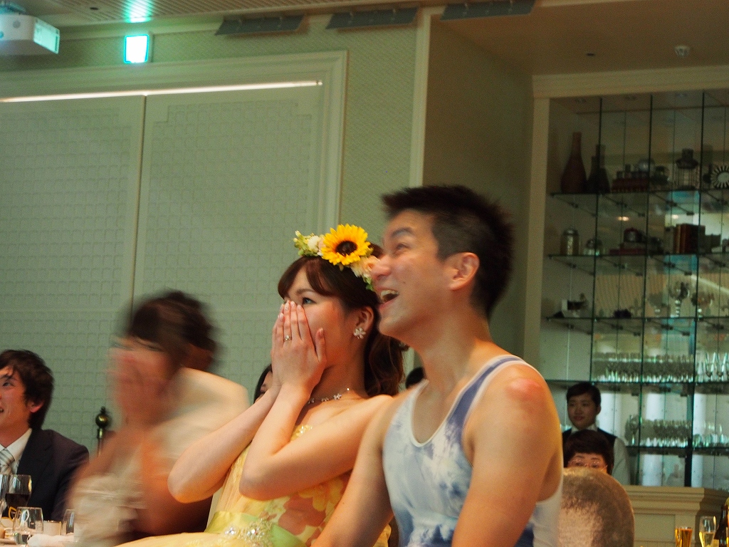 んでもって友人からのメッセージビデオをこっそり作って、本人たちにも内緒で式場と打ち合わせし、実際に披露宴で2人にお披露目。