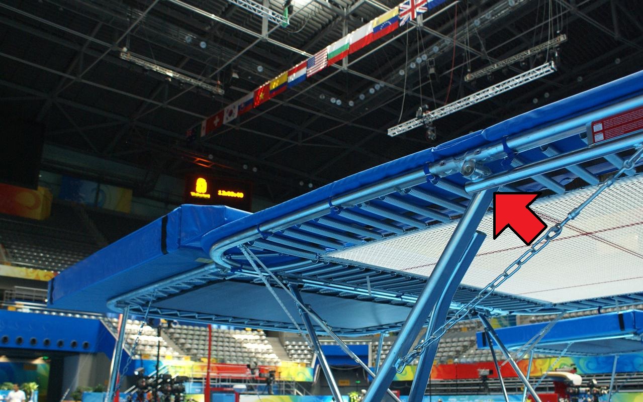 画像でも分かりにくいとは思いますが、ユーロの足はフレームより内側(トランポリンのベット側)に出てるんですよ。