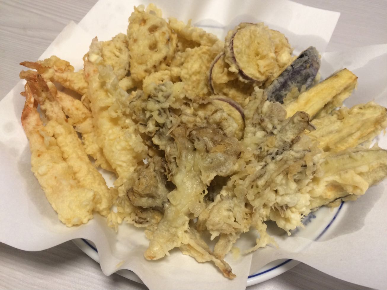 海老、レンコン、さつまいも、ナス、舞茸。