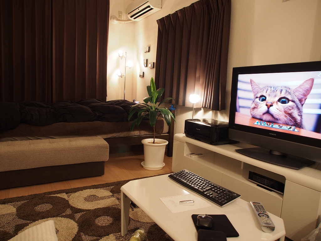 前回の目的はベッドとリビング的なとこをわけるつもりでパソコンを間に置きました。