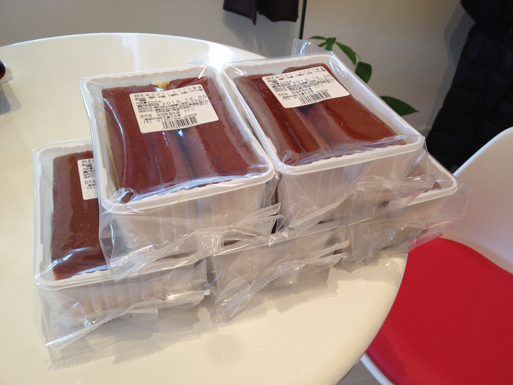 カステラは蜂蜜・抹茶・ココア・黒糖が混ざり、選べませんってやつでした。