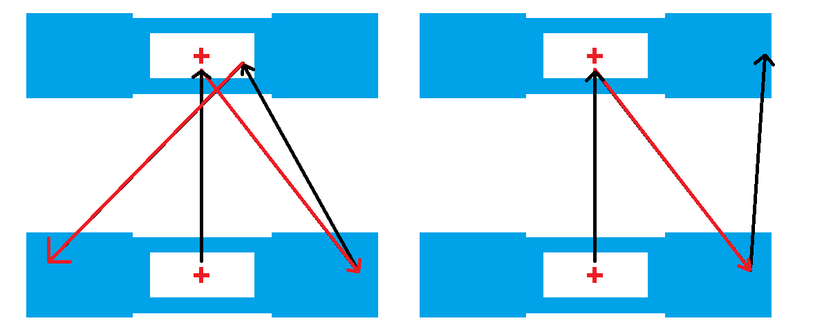 この際受けて側のテクニックとしては、ただ返してしまっては反対側のエバーに返され得点にされてしまうので、相手が返しにくいように直線的に返すのが理想的である。