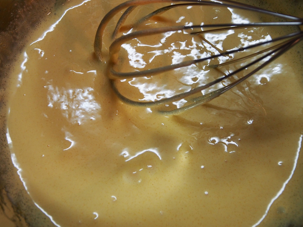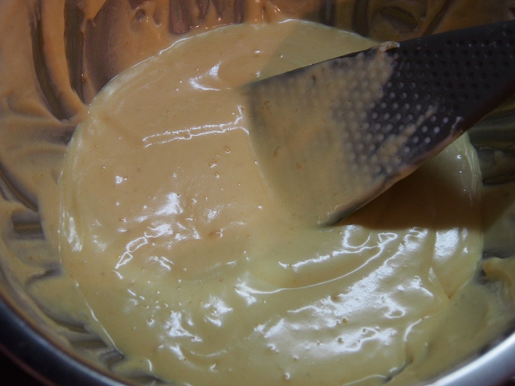 4.混ぜ終わったら鍋に戻してカスタードみたいになるまで加熱する