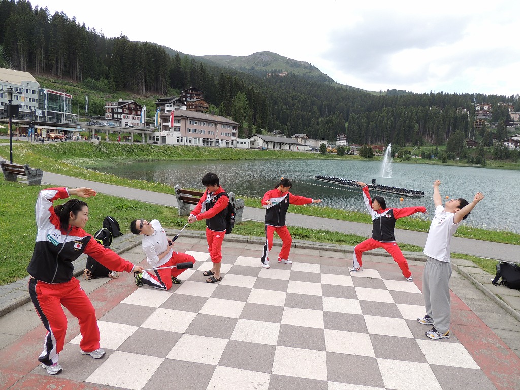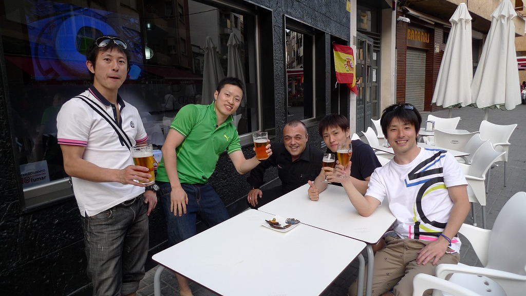 大会終了後、スペインのサッカーの試合を見ながら夕食